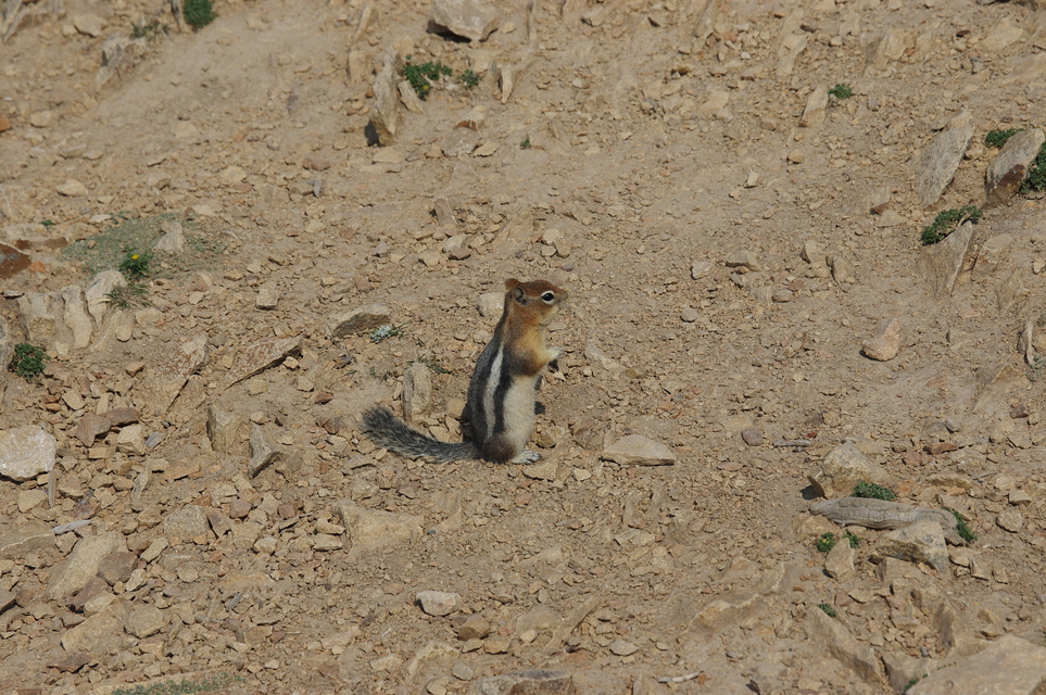 Small mammals like chipmunks have a high population here. Some were very brave and lived around the geysers. We also saw a marmot from our car when driving up to a peak. In the Cascade Canyon trial, we frightened a rat like animals, possibly a pika.