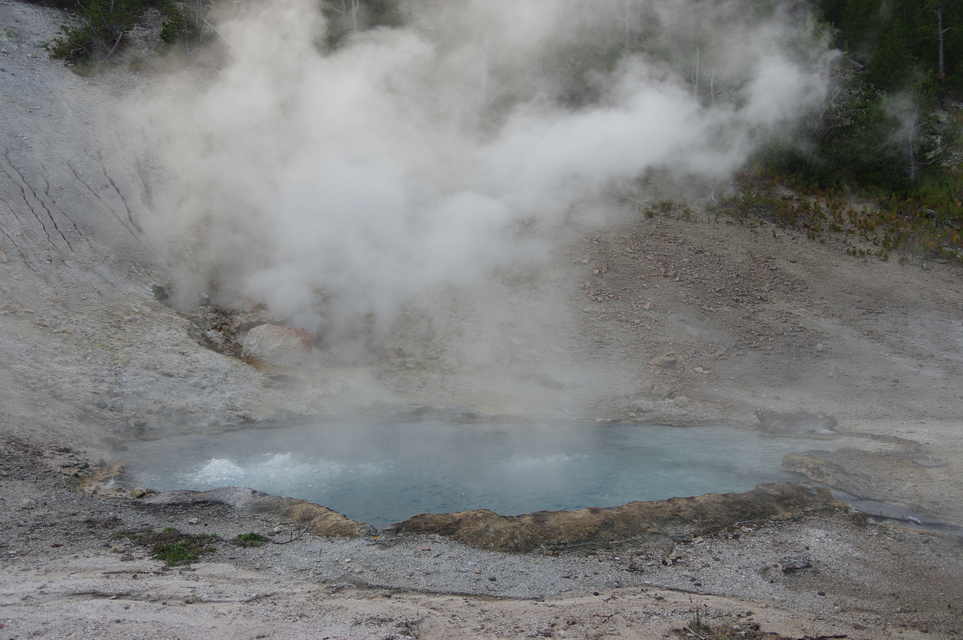 Yellowstone is famous for its colorful hydrothermal features, including hot springs, geysers, mudpots, travertine terraces, and fumaroles. The variety and the amount are extraordinary. They are everywhere in the park, but more or less different at each place.