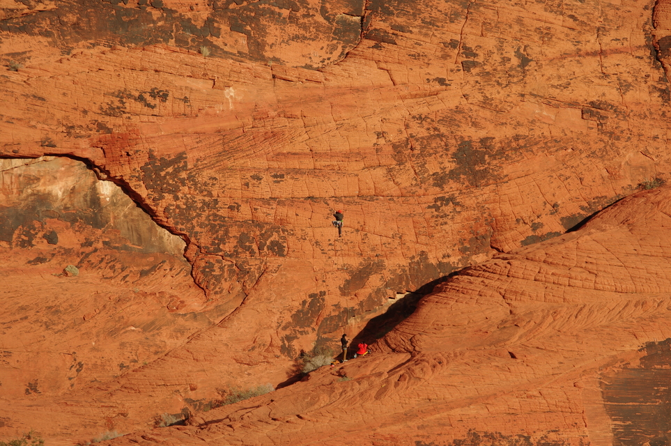 The colored rocks are common in districts around Las Vegas, especially red rocks. The redness is from the iron inside. This also seems to be a popular place for climbing.