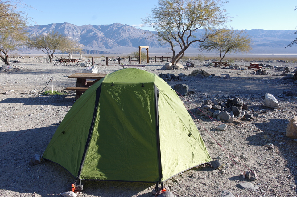 Our trip lasted 5 days. We used a rental car to drive around. As usual, we slept in our green tent in the Panamint Springs campground. The ground there is sandy and not really the best for camping. Our tent almost got blown away on one day. We got back and found the tent was lying on the side. It was still there only because some kind neighbor helped put rocks on the edge.
