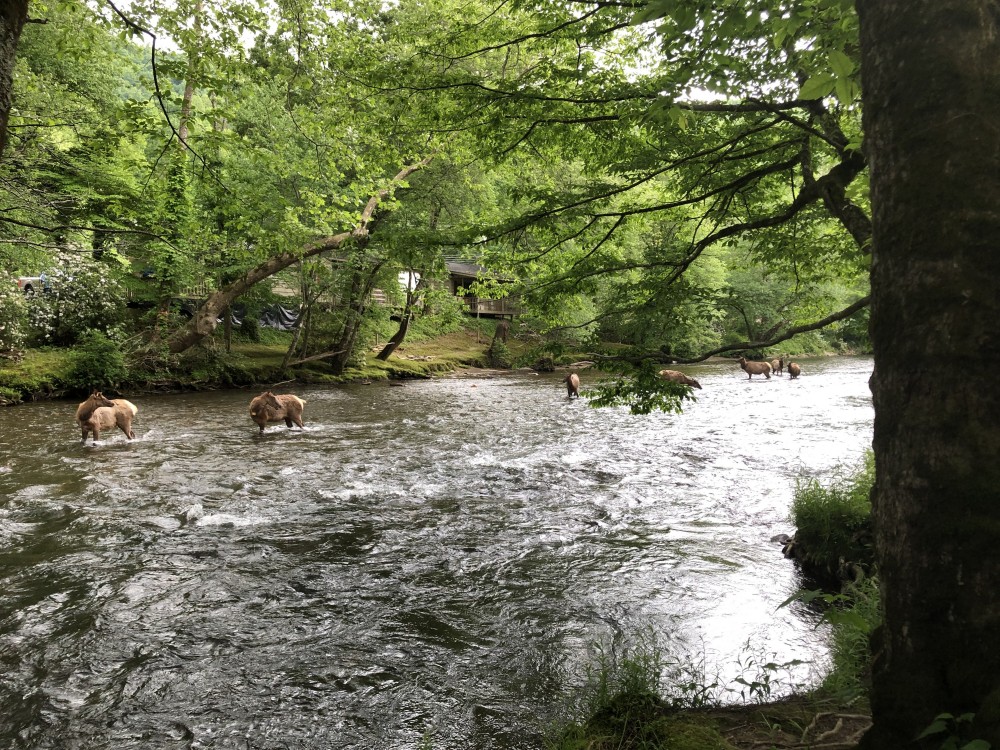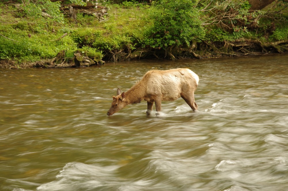 Since it was still bright, we went down the Oconaluftee River Trail. We walked and walked and met a deer in the creek, a herd of deers actually. That scene was touching for some reason.