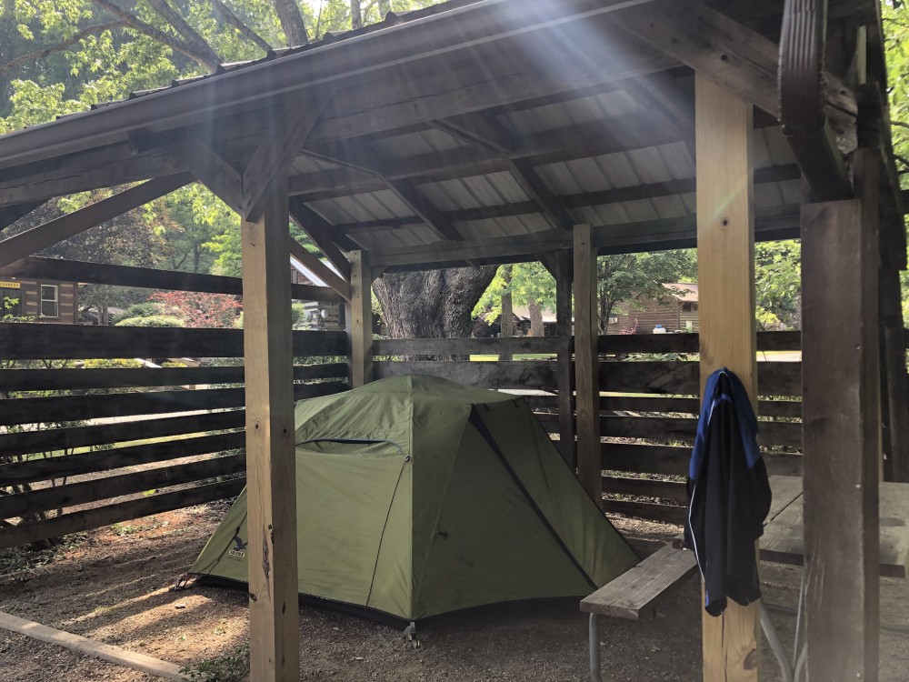 In the end of the tubing, it started to rain. It was a Sunday, so most families left the campground. We went back and moved our tent to a pavilion to avoid the rain. Camping is always more fun in windless sunny days.